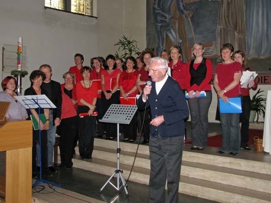 Als Hauptakteure das Ensemble Animata. Animata steht für die „Beseelten“. Wenn man dieses Power-Team hört, glaubt man sich wirklich mit Frische, mit Optimismus, mit neuer Kraft belebt. Entstanden ist das Ensemble aus einem Mütterseminar heraus, heuer feiern sie ihr 10-Jahres-Jubiläum: 10 Jahre üben sie Woche für Woche, zehn Jahre stellen sie ihres Sangeskunst auch ausschließlich ehrenamtlich in den Dienst wohltätiger Projekte. Treibende und immer wieder auch einende Kraft unsere Vroni Wirth – sie managt auch den Jugendchor unserer Pfarre.