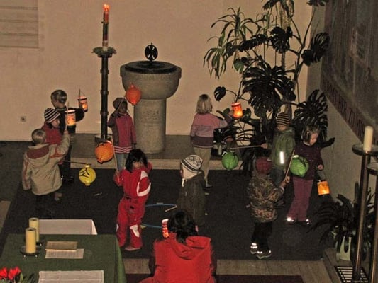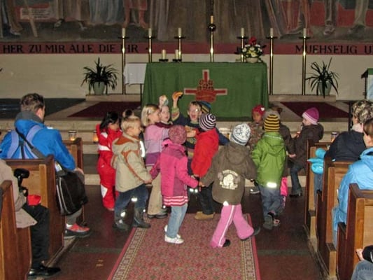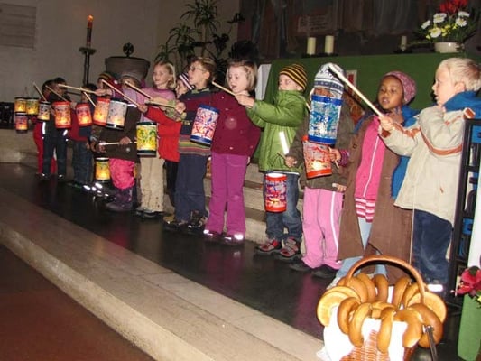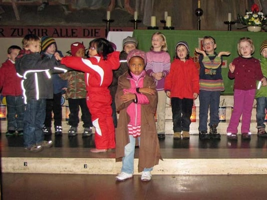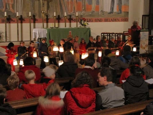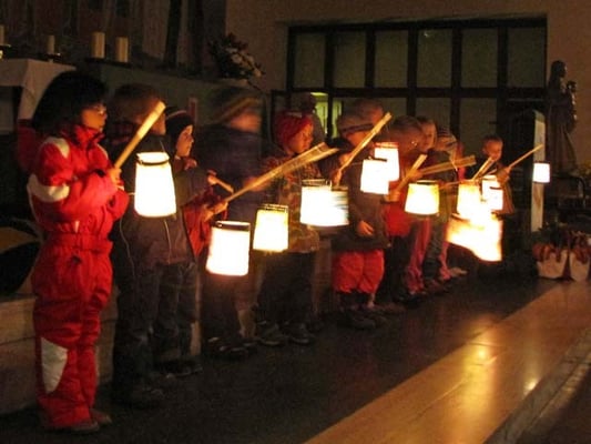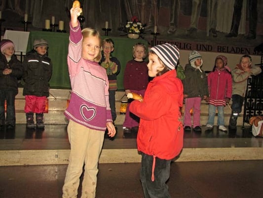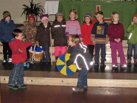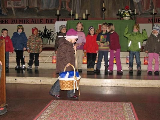 Zur Martinsfeier am Mittwoch dem 11.November 2009 kamen nicht nur alle Eltern, sondern auch Großeltern und Geschwister. Zum Beginn um 17:00 war es draußen schon dunkel und der Laterneneinzug in die Kirche war sehr stimmungsvoll.