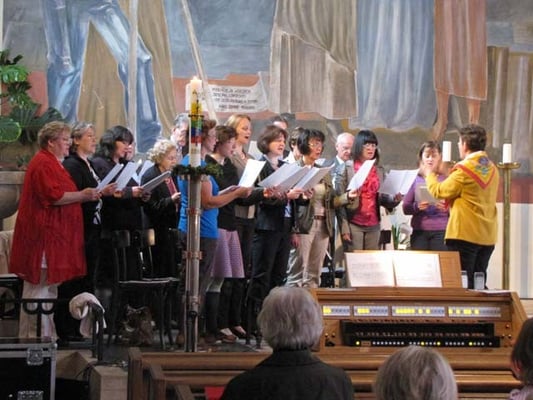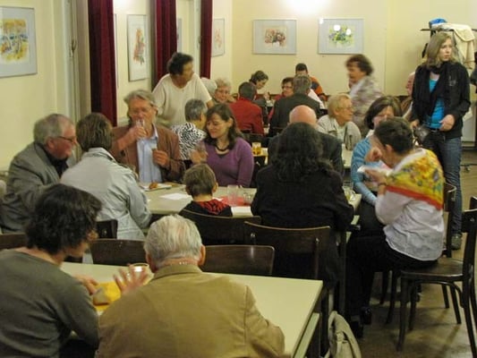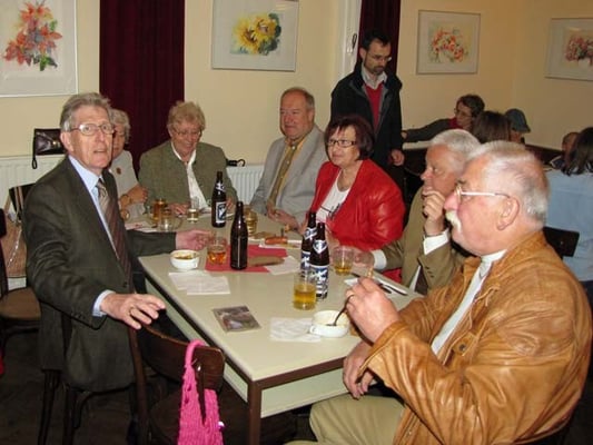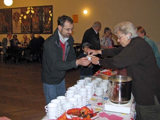 Nach dem Hochamt zu Fronleichnam gab es einen Frühschoppen. Leider machte uns das Wetter einen Strich durch die Rechnung. Bei Regen musste der Frühschoppen im Pfarrsaal stattfinden. Das tat aber der guten Stimmung keinen Abbruch.