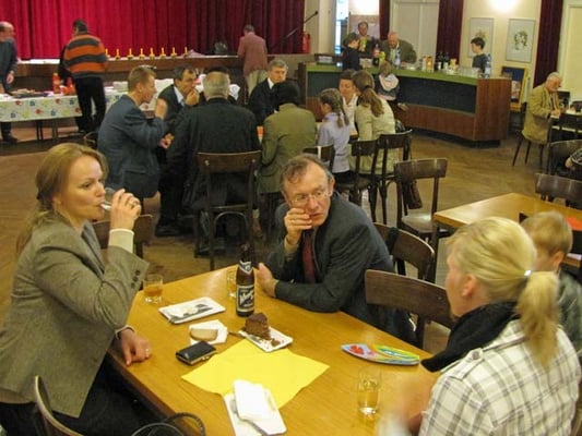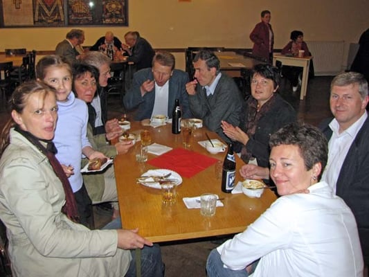 Es gab Grillwürste und Gulaschsuppe zum Essen, und natürlich auch Bier zum Trinken.