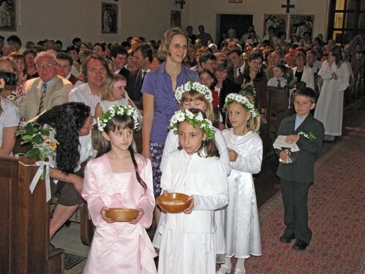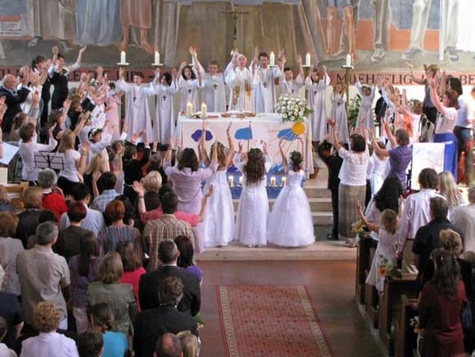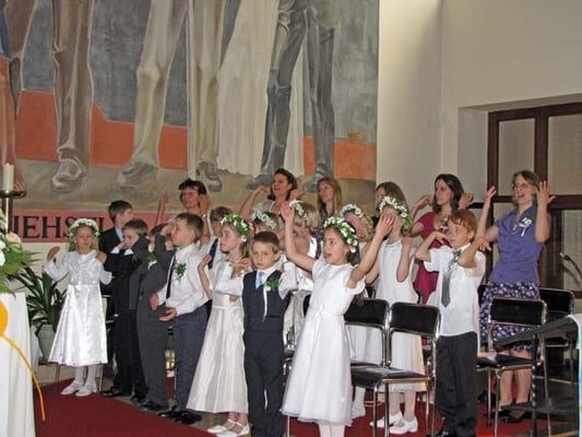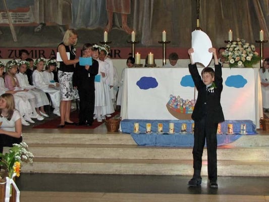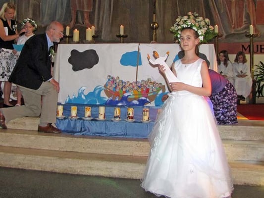 Die Ertstkommunion fand im Rahmen einer Kindermesse am Christi Himmelfahrts Tag statt: