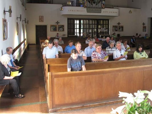 Nach der gemeinsamen Messe trafen sich alle zu einem gemütlichen Beisammensein im Pfarrsaal. Mit einer Diashow auf der neuen großen Leinwand konnte man nebenbei die Feste und Veranstaltungen des vergangen Arbeitsjahres Revue passieren lassen, wie zum Beispiel Jungscharlager, Erntedankfest, Flohmarkt, Advent, Punschhütte, Weihnachten, Erstkommunion, Firmung und Kulturreise.