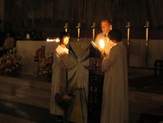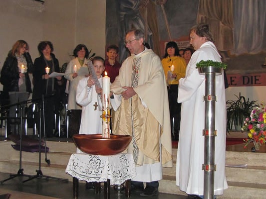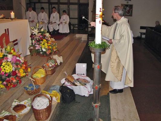 Danach wird die Osterkerze geweiht und das Taufversprechen erneuert.