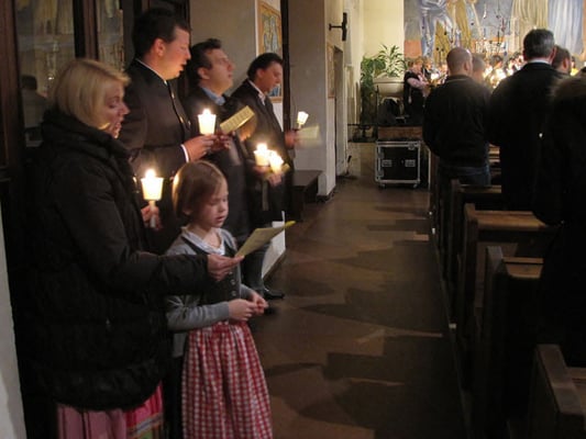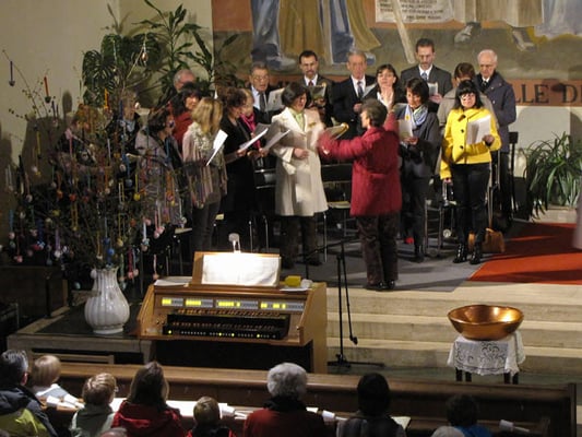 Am Ostersonntag 2012 kamen zur Auferstehungsfeier, trotz früher Stunde, viele Leute und alle nahmen mit Freude am liturgischen Geschehen teil. Der Kirchenchor sorgte während der fast 2-stündigen Osterliturgie für feierliche Stimmung.