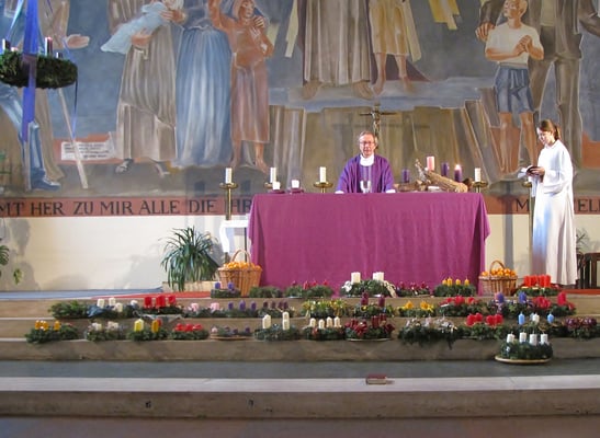 Sie können Ihren Adventkranz am ersten Adventwochenende in die Messe zur Weihe mitnehmen: