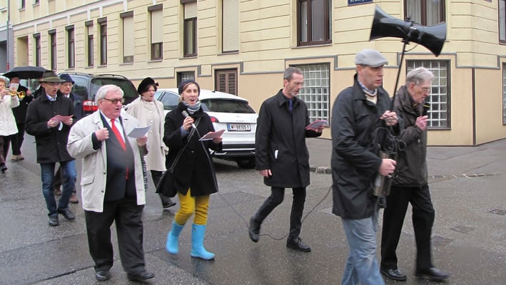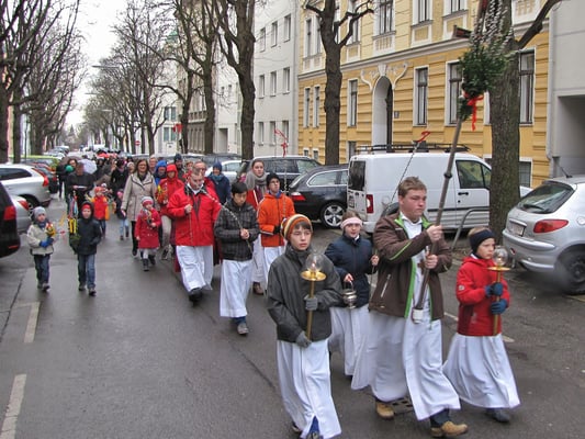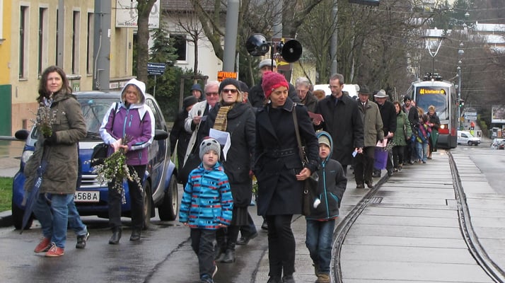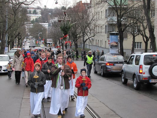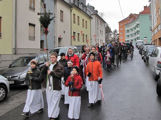 Nach der Palmweihe ging die Prozession über die Urbangasse - Zeilergasse - Güpferlingstraße - Sandleitengasse zurück in die Kirche.