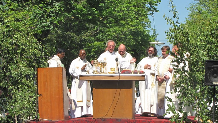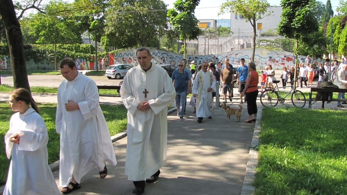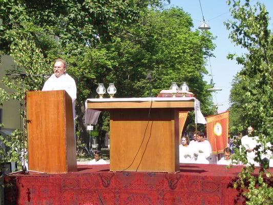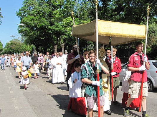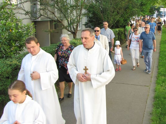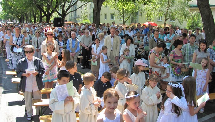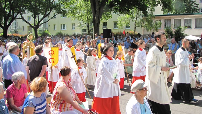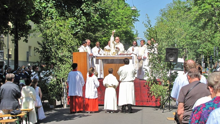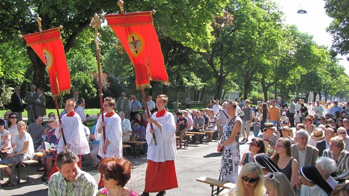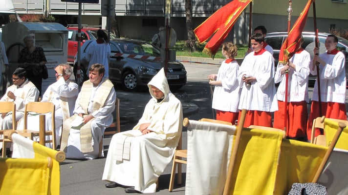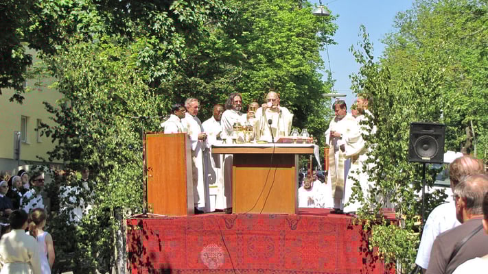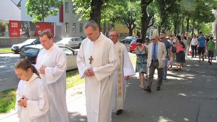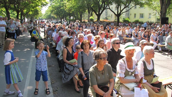 Zu der Prozession zur Sühnekirche und der gemeinsamen Messfeier mit den 4 Hernalser Pfarren auf der Alszeile kamen bei hochsommerlichen Temperaturen ca. 80 Sandleitner.