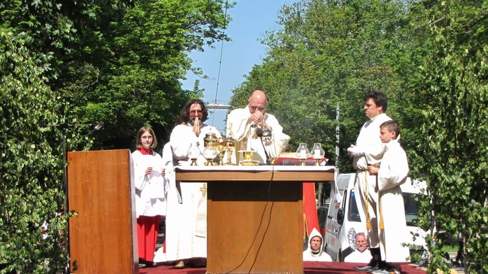 2013 beschloss Pfarrer Josef Markl und der Pfarrgemeinderat diese alte Tradition wieder aufleben zu lassen. Zuvor gab es seit 37 Jahren in Sandleiten keine Fronleichnamsprozession mehr, die letzte fand 1977 unter Pfarrer Karl Maurer statt.