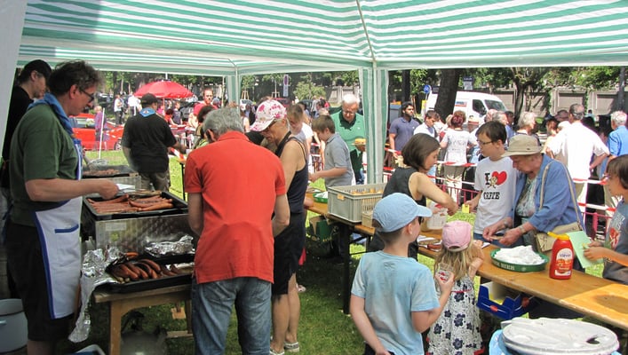 Anschließend gibt es dann, auch im Freien, einen Frühschoppen mit Grillen und Trinken.