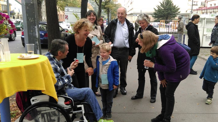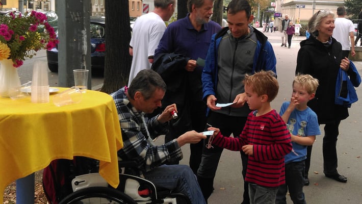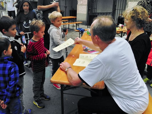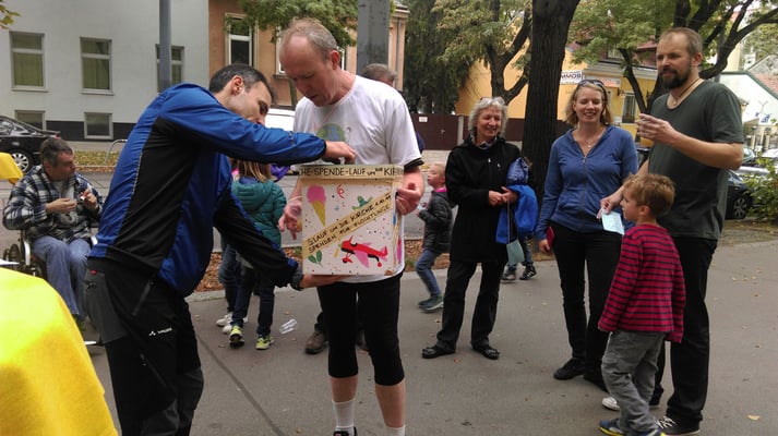 In einer Spendenbox können Läufer und Besucher ihre Spenden deponieren. Die Einnahmen gehen diesmal nicht an die Pfarrcaritas, sondern an die Organisationen, die sich um die Flüchtlinge kümmern.