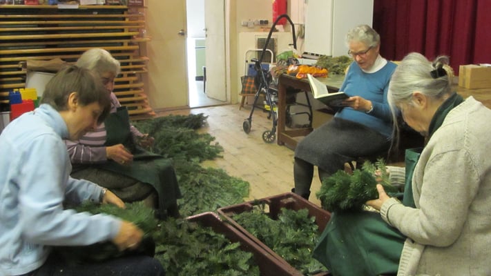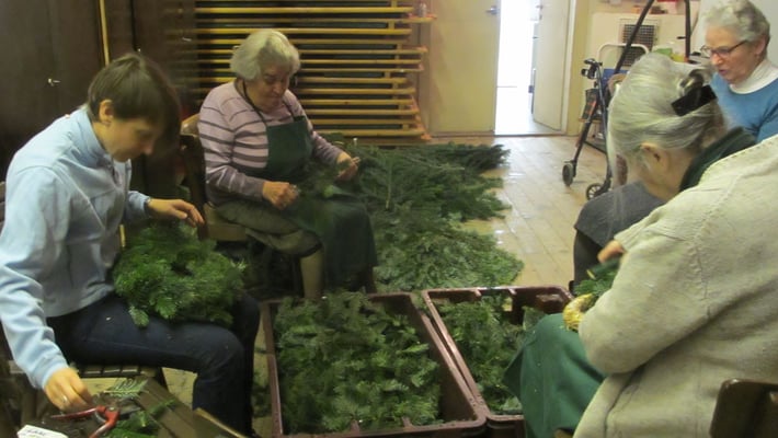 Die Pfarre stellte das Reisig zur Verfügung. Unkostenbeitrag € 8 pro Kranz.