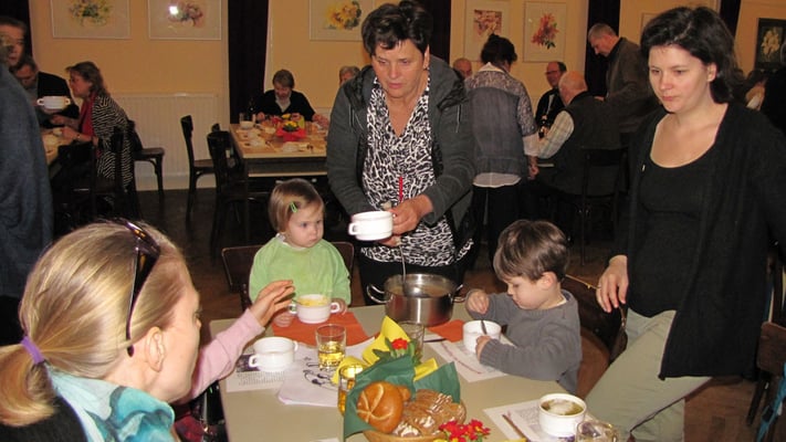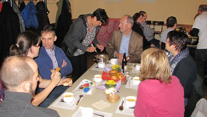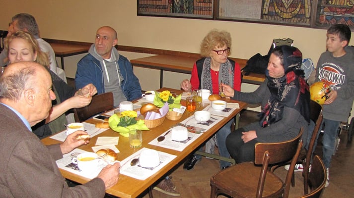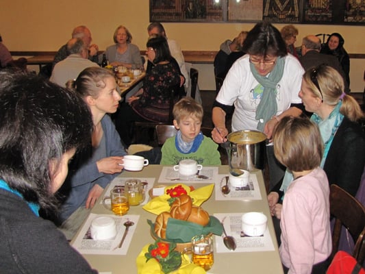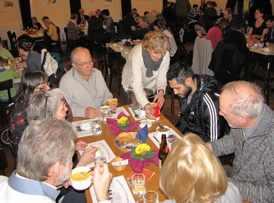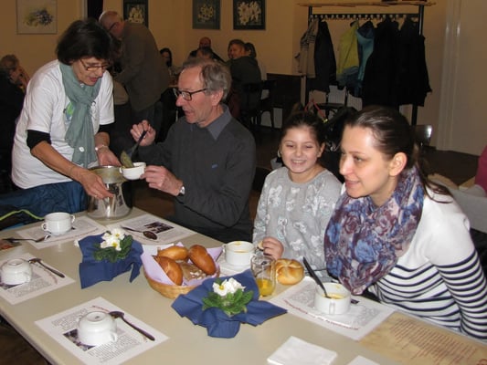 Beim Suppenessen am vierten Fastensonntag sammelte die EineWelt Gruppe 2.405 € für Syrische Flüchtlinge im Libanon. Zu Gast war auch die von der EineWelt Gruppe betreute syrische Flüchtlingsfamilie.