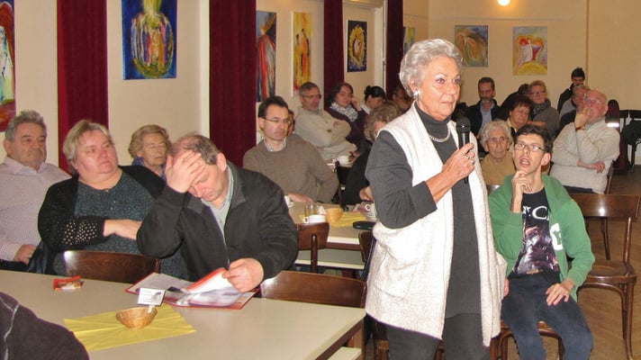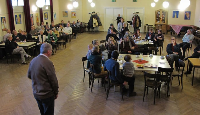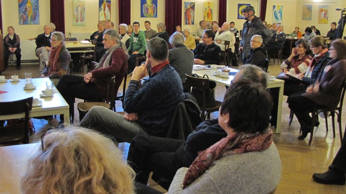 Albert Mattes führte durch das Programm und moderierte Wortmeldungen und Diskussionen. Diesmal leider alleine ohne Martha Mikulka, die mit Grippe zu Hause bleiben musste.