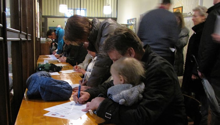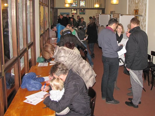 Leider war die Wahlbeteiligung im Vergleich zu 2012 um -20% geringer - vielleicht auch wegen des kaltem, nassen Wetters am Wahlsonntag? Auffallend war jedenfalls das Fehlen von Jugend und jungen Erwachsenen bis 40 Jahre!