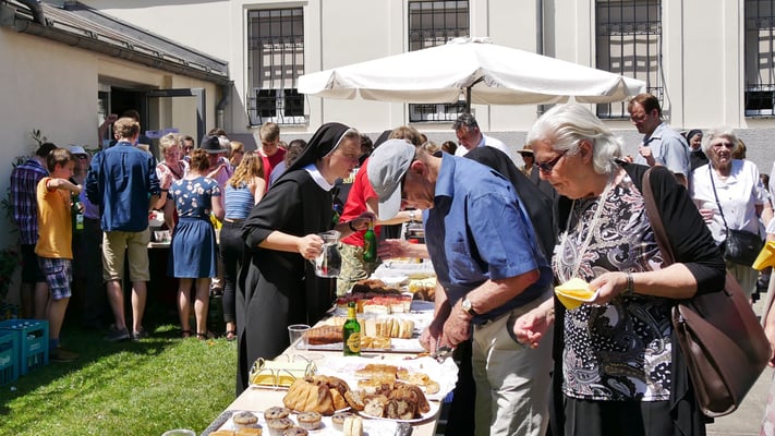Nach Abschluss der Prozession fand im Kloster Liebhartstal eine Agape statt, zu der die Schwestern des Benediktiner Ordens heiße Würstel, Brote, Kuchen, Bier, Wein, kalte Getränke und Kaffee gerichtet hatten.
