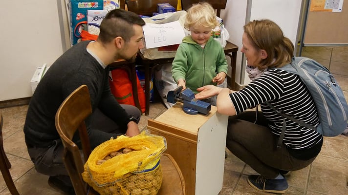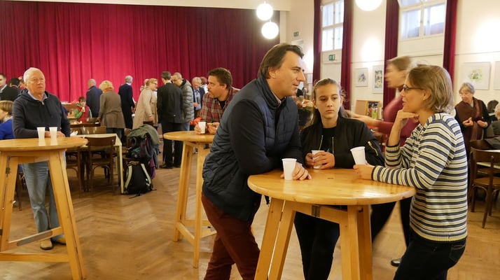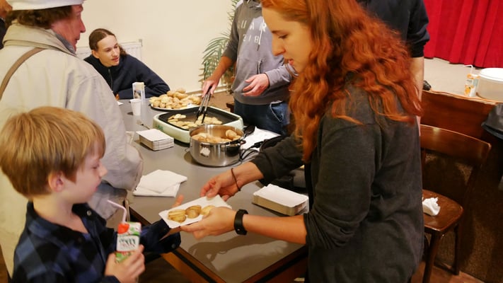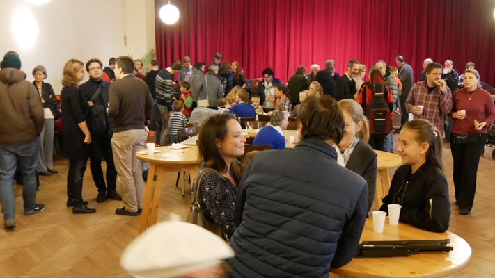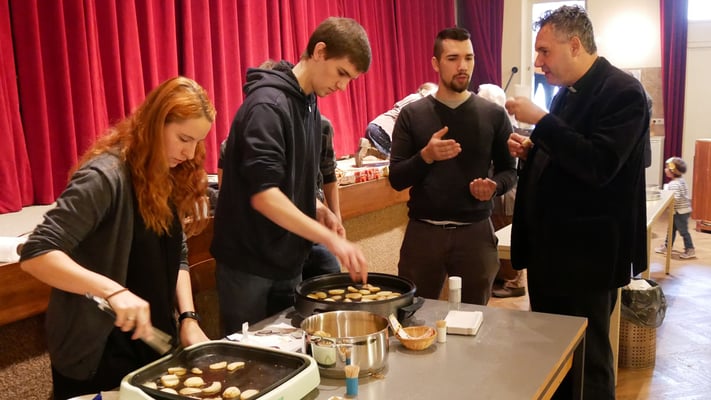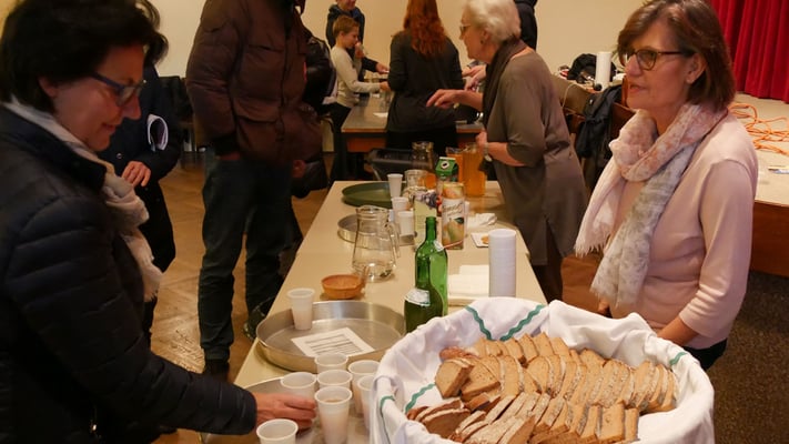 Leider war das Wetter unsicher, am Beginn der Messe regnete es leicht und der Wind war kalt, sodass die Agape und die Spielstationen im Pfarrsaal stattfinden mussten.