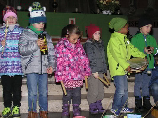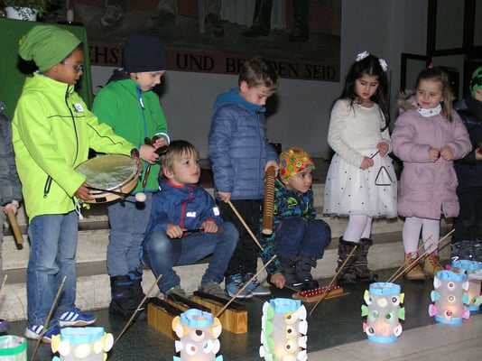 Wir feierten unser Martinsfest in der Kirche mit Liedern, stellten das Martinsspiel mittels Klanggeschichte dar und in einem Spiellied zeigten uns die Kinder wie einfach es sein kann, einander Freude zu bereiten.