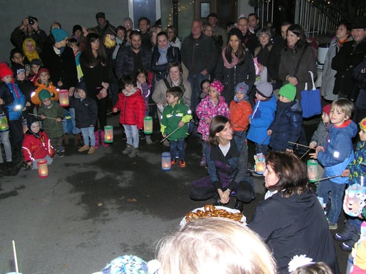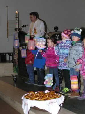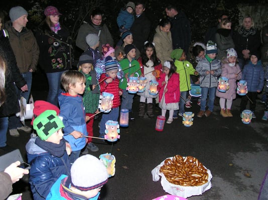 Singend zogen wir danach um die Kirche und ließen das Fest in unserem Garten ausklingen. Die Kinder teilten die gesegneten Brezel und alle wärmten sich noch mit warmen Punsch.