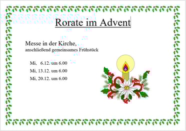 Für alle Frühaufsteher gibt es an den 3 Mittwochen im Advent wieder besinnliche Rorate Messen zur Einstimmung auf Weihnachten.