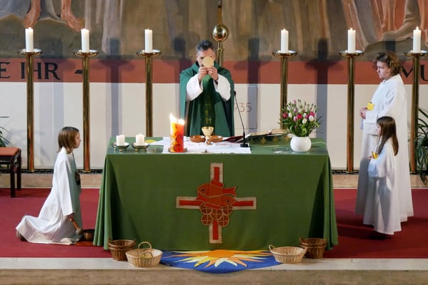 Zur Vorbereitung auf die Erstkommunion 2019 treffen sich regelmäßig 14 Kinder, die in vier Gruppen von sogenannten "Tischeltern" begleitet werden. Die Gesamtleitung erfolgt durch zwei erfahrene Erstkommunion Begleiterinnen Franziska Seiser und Barbara Kunath.