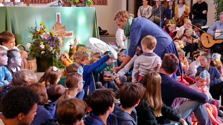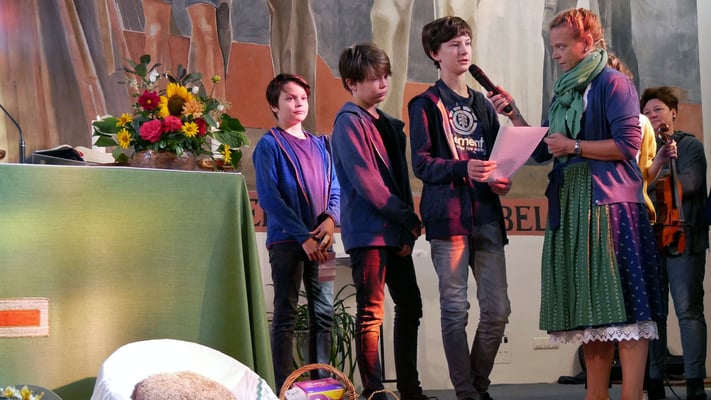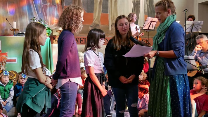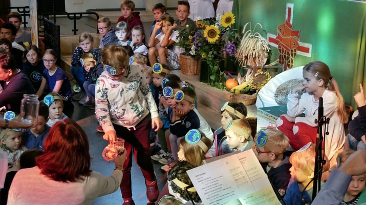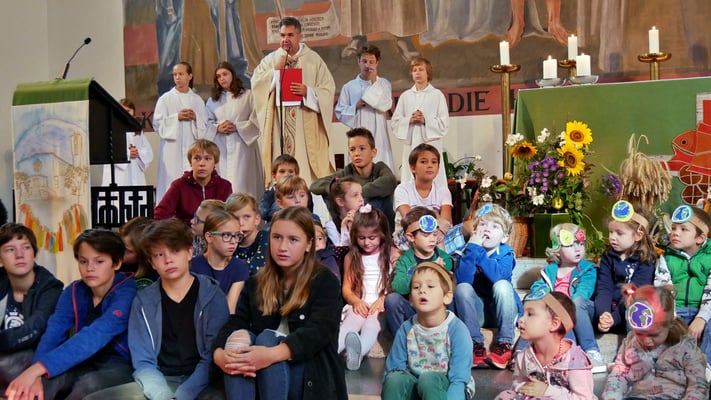 Unter diesem Motto haben die Kinder vom Kindergarten und die Jungscharkinder in der Messe danke gesagt. Und in Zeiten des Klimawandels versprechen sie auch mit den Gaben der Natur nachhaltig umzugehen: