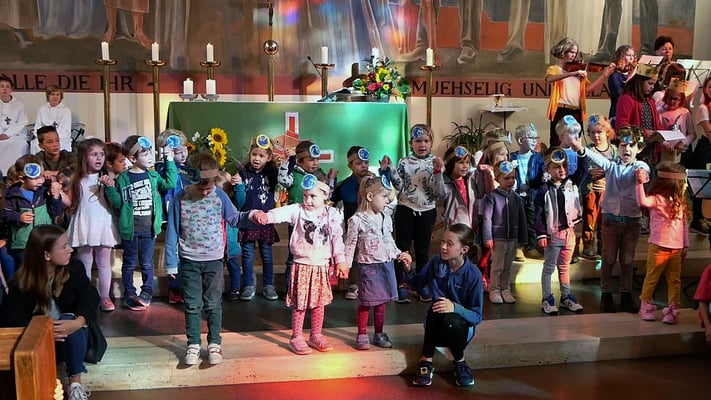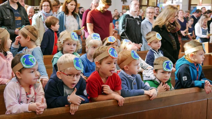 Im folgenden Video singen die Kindergarten Kinder das Lied "Deine Welt ist meine Welt" - ein Bekenntnis zum Klimaschutz! Außerdem singen die Kinder das Vater Unser gemeinsam um den Altar versammelt:
