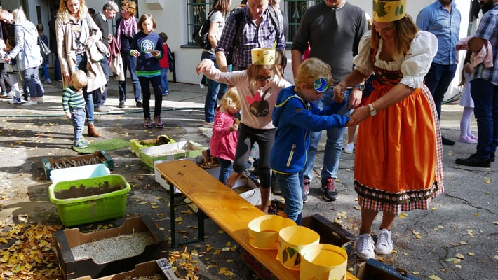 Die Erntedankmesse wurde von Kindergarten und Jungschar gestaltet, in der sich die Kinder für die Gaben der Ernte bedanken. Anschließend waren auf dem Platz vor der Kirche Most, Sturm und Brot für alle gerichtet. Für die Kinder gab es vor dem Jungscharheim Spiel- und Bastelstationen.