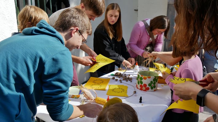 Für die Kinder waren vor dem Jungscharheim Spiel- und Bastelstationen gerichtet, an denen sie ihre Geschicklichkeit und Kreativität unter Beweis stellen können.