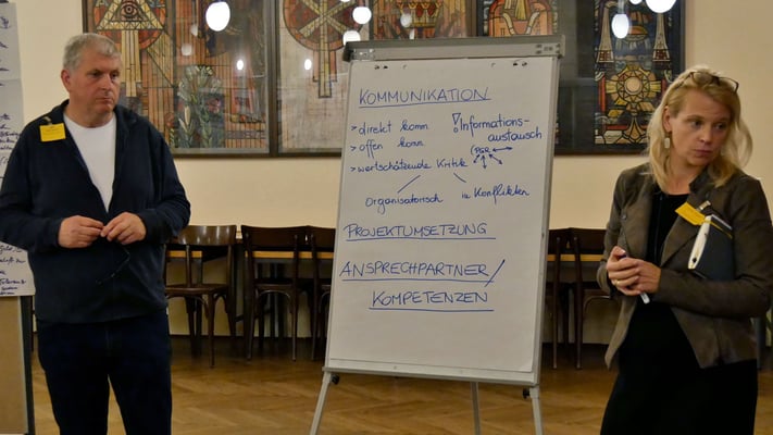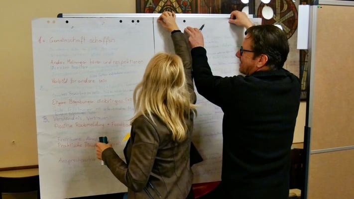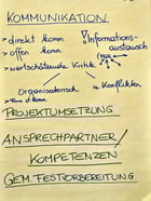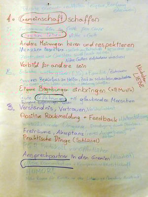 Als wichtigstes Thema stellte sich offene Kommunikation heraus, die auf allen Flipchart Seiten der 6 Gruppen ganz oben stand. Darüber wurde im Anschluss noch diskutiert.