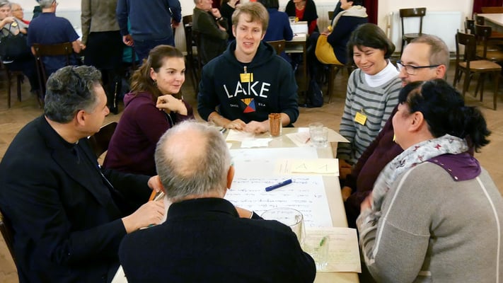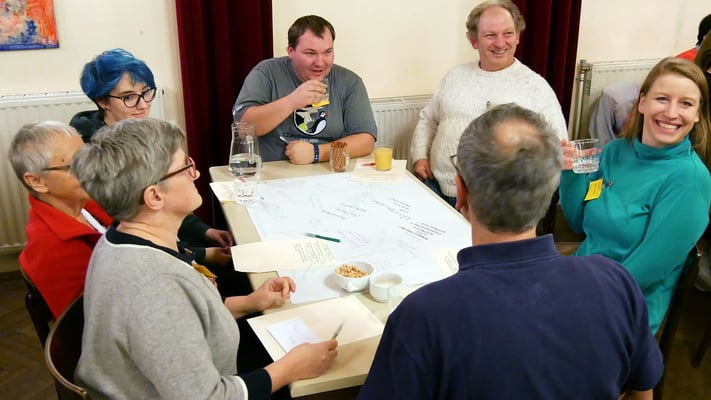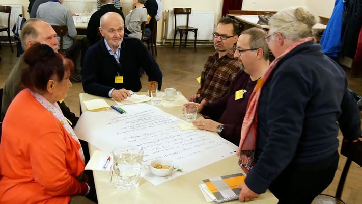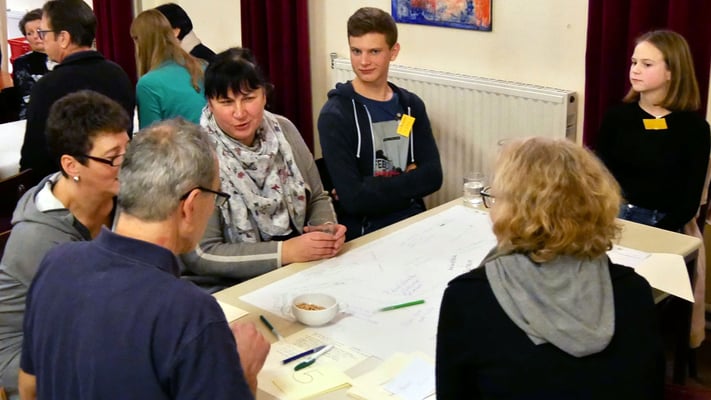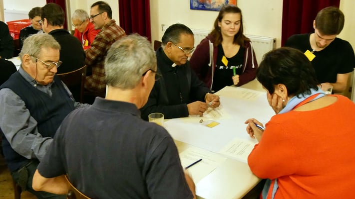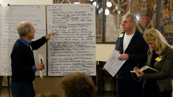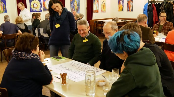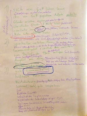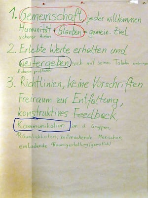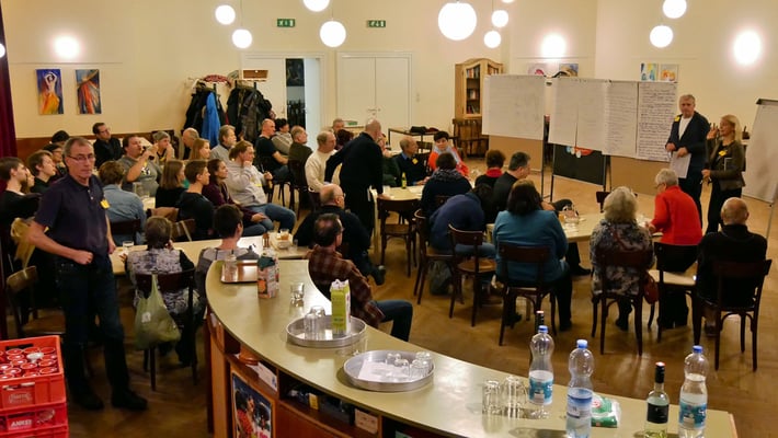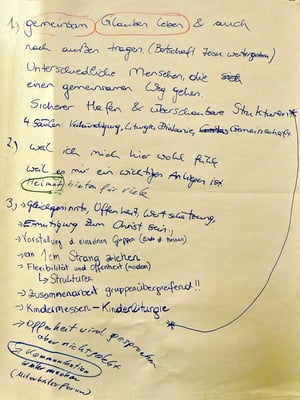 Bei einem Treffen aller Gruppen und Runden der Pfarre konnten die Teilnehmer in Gruppengesprächen erarbeiten, was das gemeinsame Ziel ist, warum sich jeder engagiert und was jeder braucht um seine/ihre Ziele zu erreichen.