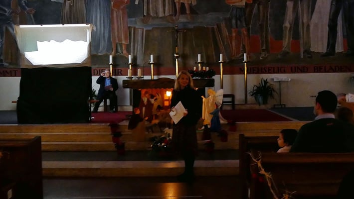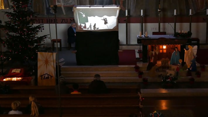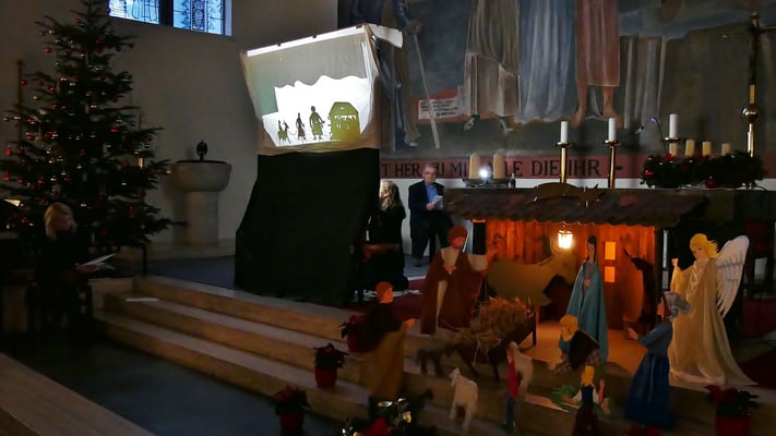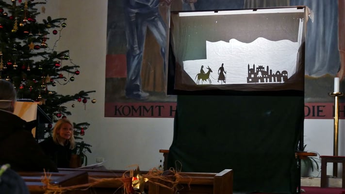 Schon seit vielen Jahren ist die Kindermette am Nachmittag Gelegenheit für viele Eltern und Großeltern sich mit ihren Kindern und Enkelkindern auf das Fest zu Hause einzustimmen. In der Kindermette wurde die Herbergssuche als Schattentheater erzählt.
