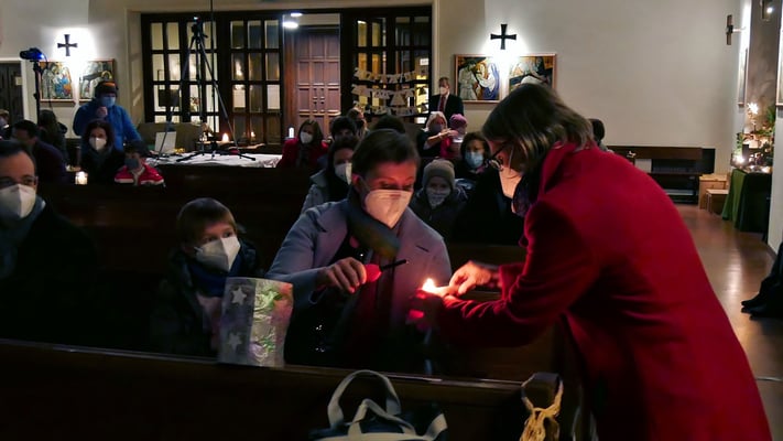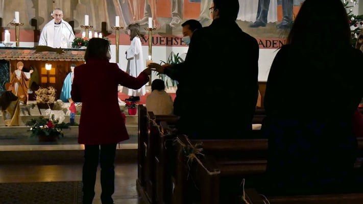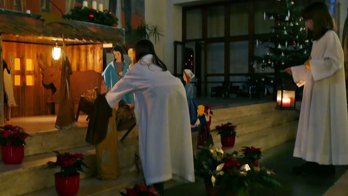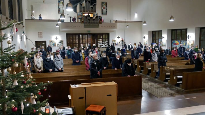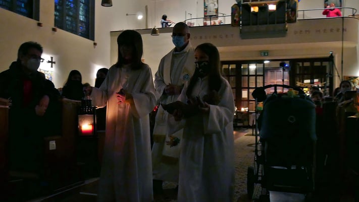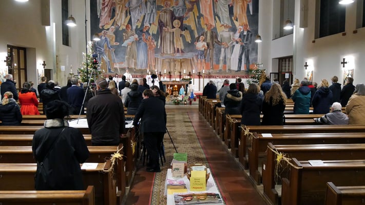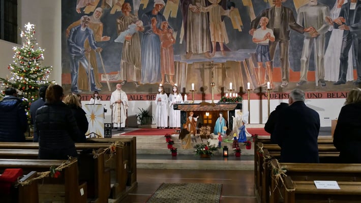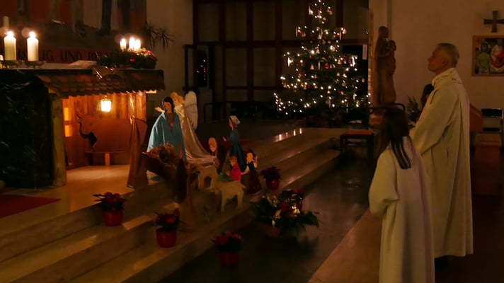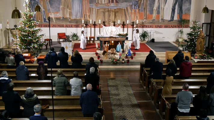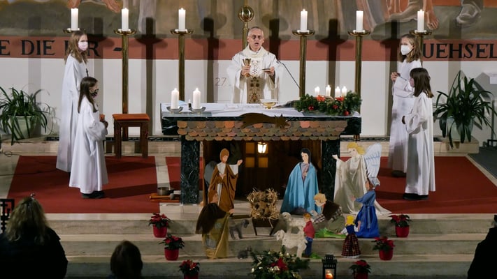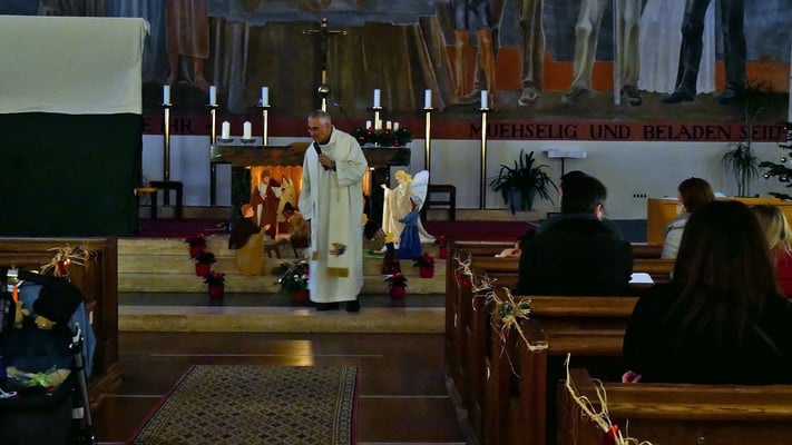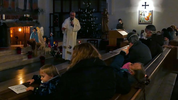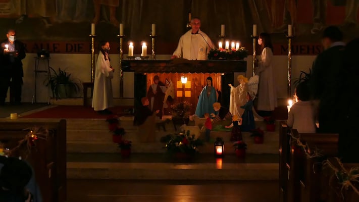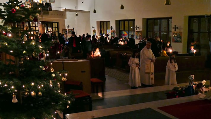 Die Christmette ist für viele eine Tradition zum besinnlichen Ausklang des Heiligen Abends. Leider war die Besucherzahl durch die Corona Abstandsregel diesmal stark eingeschränkt. Sogar das "Stille Nacht, heilige Nacht" am Ende der Mette durfte nicht von der Gemeinde gesungen werden, sondern nur von einem kleinen Chor.
