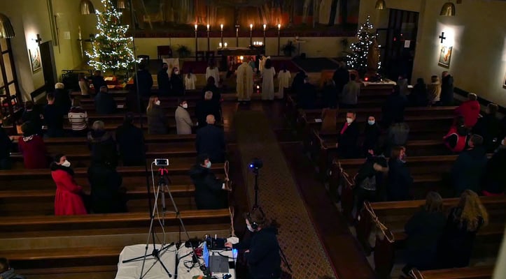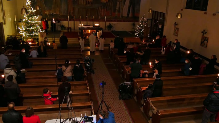 Die Christmette wurde auch per Livestream zum zu Hause Mitfeiern übertragen, was von über 130 virtuellen Besuchern genutzt wurde!