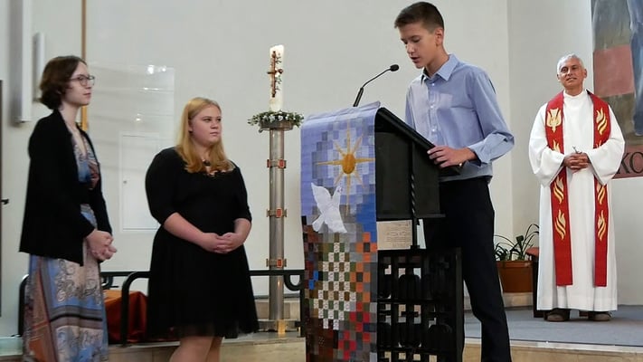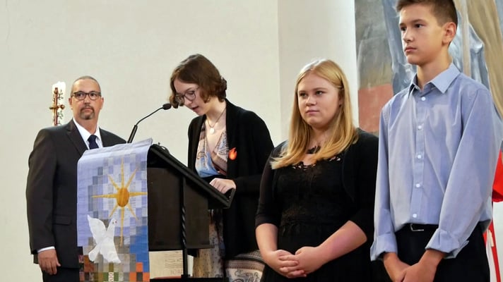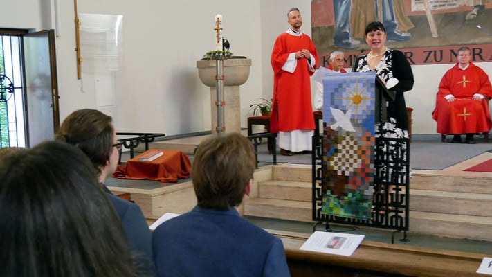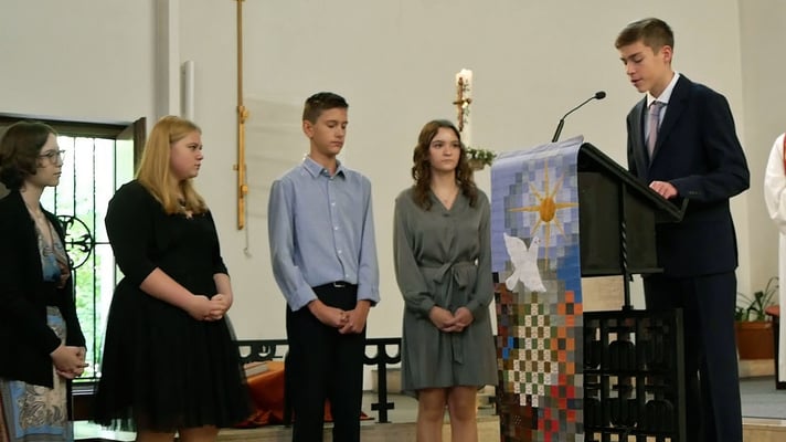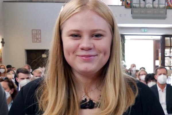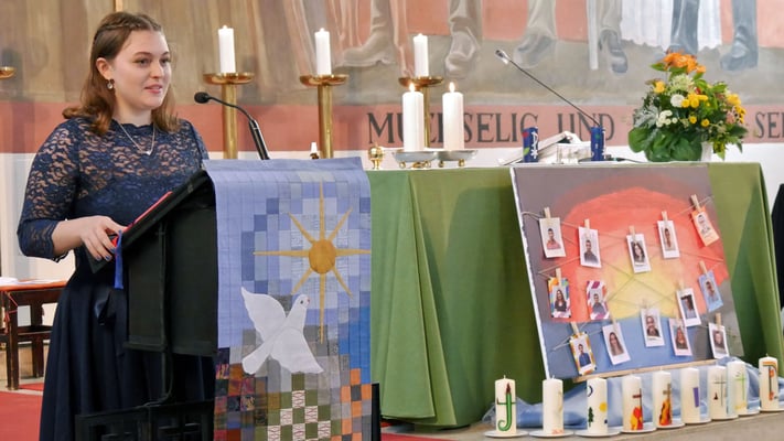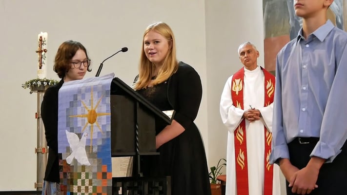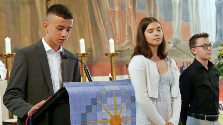Am Ende der Messe bedankt sich Franziska Seiser für das vergangene durchwachsene Jahr (mit teils online Stunden und auch echtem Zusammentreffen) und wünscht den 14 Firmlingen alles Gute auf ihrem weiteren Lebensweg.