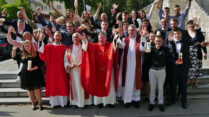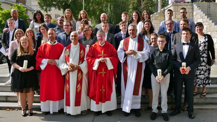 Wegen Corona fand die Firmung im September statt, diesmal gemeinsam mit Alt-Ottakring. 5 FirmkandidatInnen aus Sandleiten und 9 aus Alt-Ottakring wurden in einer schwungvollen Quo-Vadis Messe von Regens Richard Tatzreiter gefirmt. Hier gibt es einen Fotobericht und ein Youtube Video.