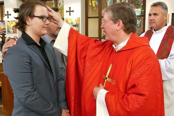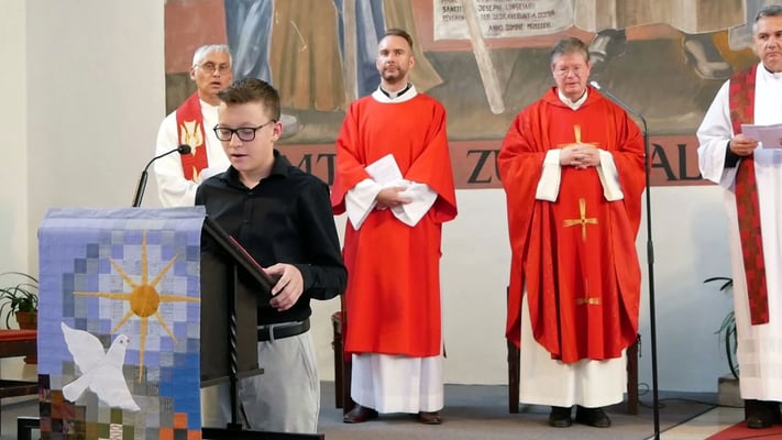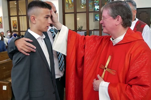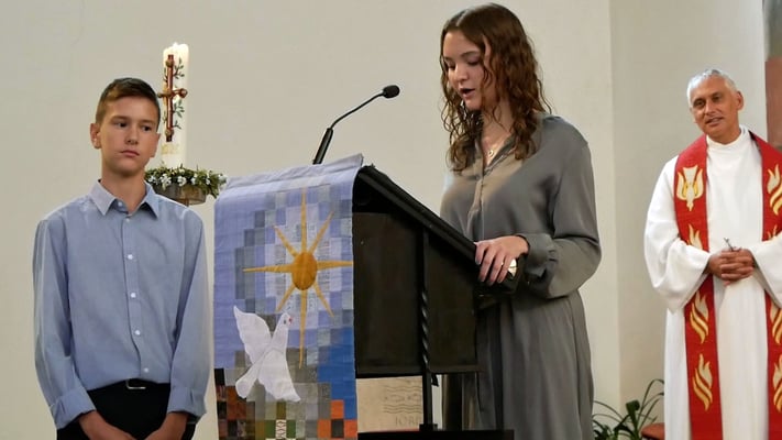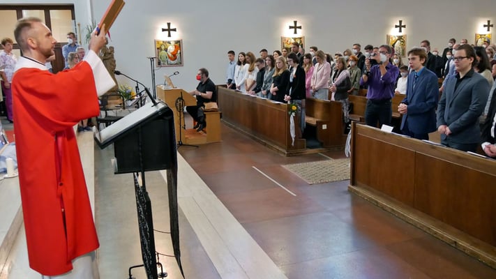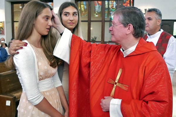 "Auch wenn's manchmal grausig und finster ist im Leben, du bist nicht allein, ich bin mit dir. Das sagt Gott heute zu euch bei der Firmung. Er gibt euch die Kraft das Gute in euch wachsen zu lassen." versichert der Firmspender den 14 jungen Menschen in der ersten Reihe. "Er gibt euch Kraft in eurem Leben, damit ihr gute Entscheidungen treffen könnt. Und er gibt euch die Hoffnung, dass man im Leben nicht alles haben muss, sondern dass euch das Beste immer noch bevor steht."