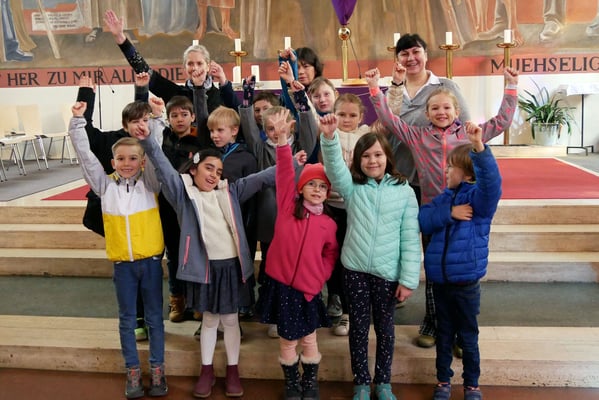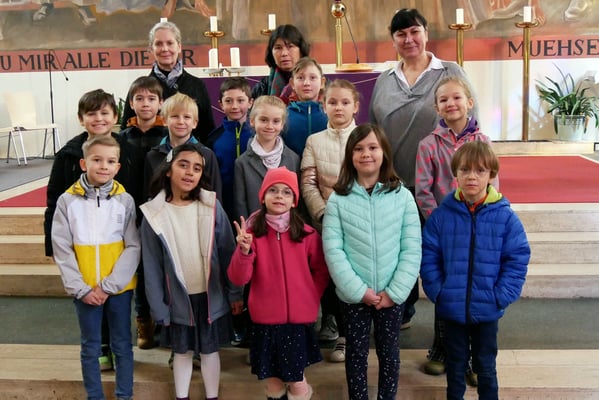 Zur Vorbereitung auf die Erstkommunion im Mai 2023 treffen sich die 13 Kinder regelmäßig und werden von sogenannten "Tischeltern" begleitet. Die Gesamtleitung erfolgt durch zwei erfahrene Erstkommunion Begleiterinnen Franziska Seiser und Barbara Kunath.