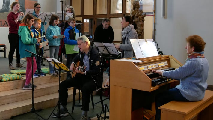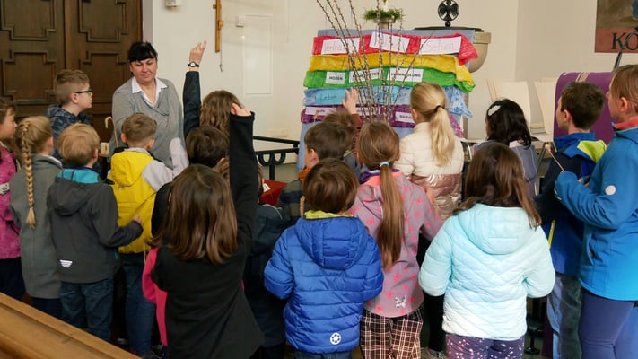 Für die 13 Kinder begann die Vorbereitung im Jänner 2023. Dabei ist die Vorstellmesse ein wichtiger Programmpunkt, bei dem die Kinder und Tischeltern aktiv eine Messe mitgestalten.