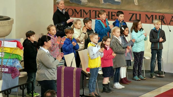 Am fünften Fastensonntag stellten sich die 13 Erstkommunion-Kinder der Gemeinde vor. Das Erstkommunion Team bereitete dazu mit dem Thema Von Jesus verwandelt werden eine Kindermesse vor.