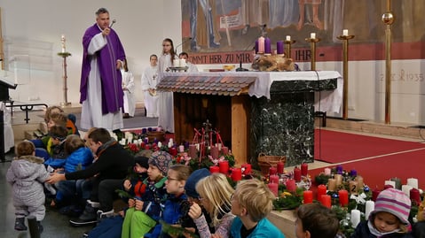 An den vier Adventsonntagen gibt es einen Kinderteil, in dem es um unsere Sinne geht - "riechen, fühlen, hören und sehen". Am vierten und letzten Adventsonntag war sehen als Thema geplant. Leider kamen keine Kinder zur Messe und der Kinderteil musste entfallen.