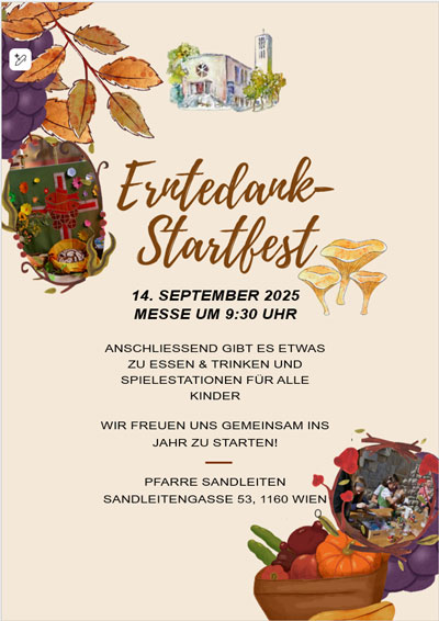 Zur Kindermesse am Erntedanksonntag kamen viele Jungscharkinder mit Eltern und Freunden, die Kirche war sehr gut besucht! Anschließend gab es im Pfarrsaal eine Agape mit Schnitzel + Kartoffelsalat, Apfelspalten, Bier und Sturm. Für Kinder gab es Spielestationen.