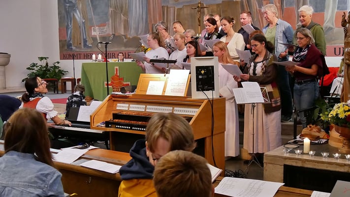In der Messe sangen alle drei Chöre, Kirchenchor, Quo-Vadis Chor und Kinderchor: