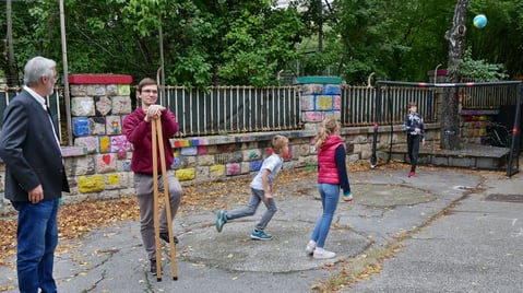Am Platz vor dem Jungscharheim waren Spielestationen, aber wegen des Schlechtwetters kamen nur wenige Kinder.