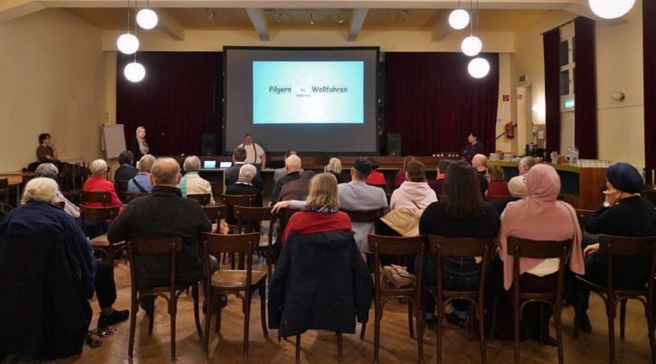 Diese interkulturelle Veranstaltung im Pfarrsaal Sandleiten beschäftigte sich mit der Frage warum und wie Muslime und Christen pilgern. Peter Hink von der Pfarre Sandleiten und ein Vertreter der islamischen Glaubensgemeinschaft sprachen darüber.