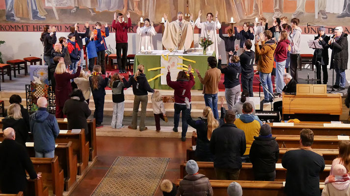Die Kindermesse wird von den JungscharleiterInnen gestaltet.