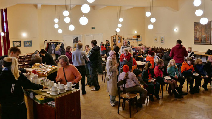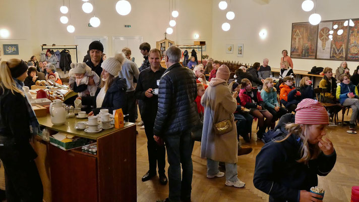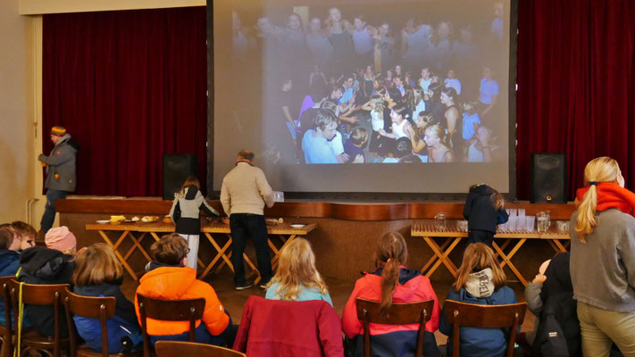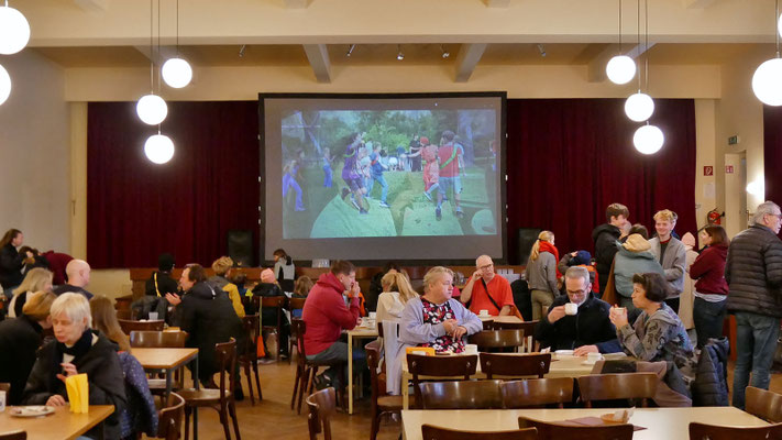 Das Pfarrkaffee nach der Messe wurde von der Jungschargruppe gemacht und auf der großen Leinwand im Pfarrsaal wurden Fotos vom Jungscharlager des vergangenen Sommers gezeigt.