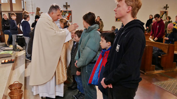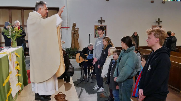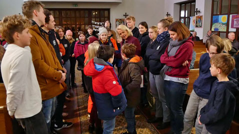 Am Ende der Messe spendete der Pfarrer den Jungscharkindern und LeiterInnen der neuen Gruppe den Segen.