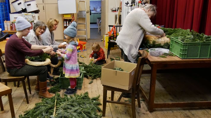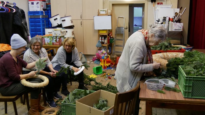 Adventkranzbinden in der Pfarre