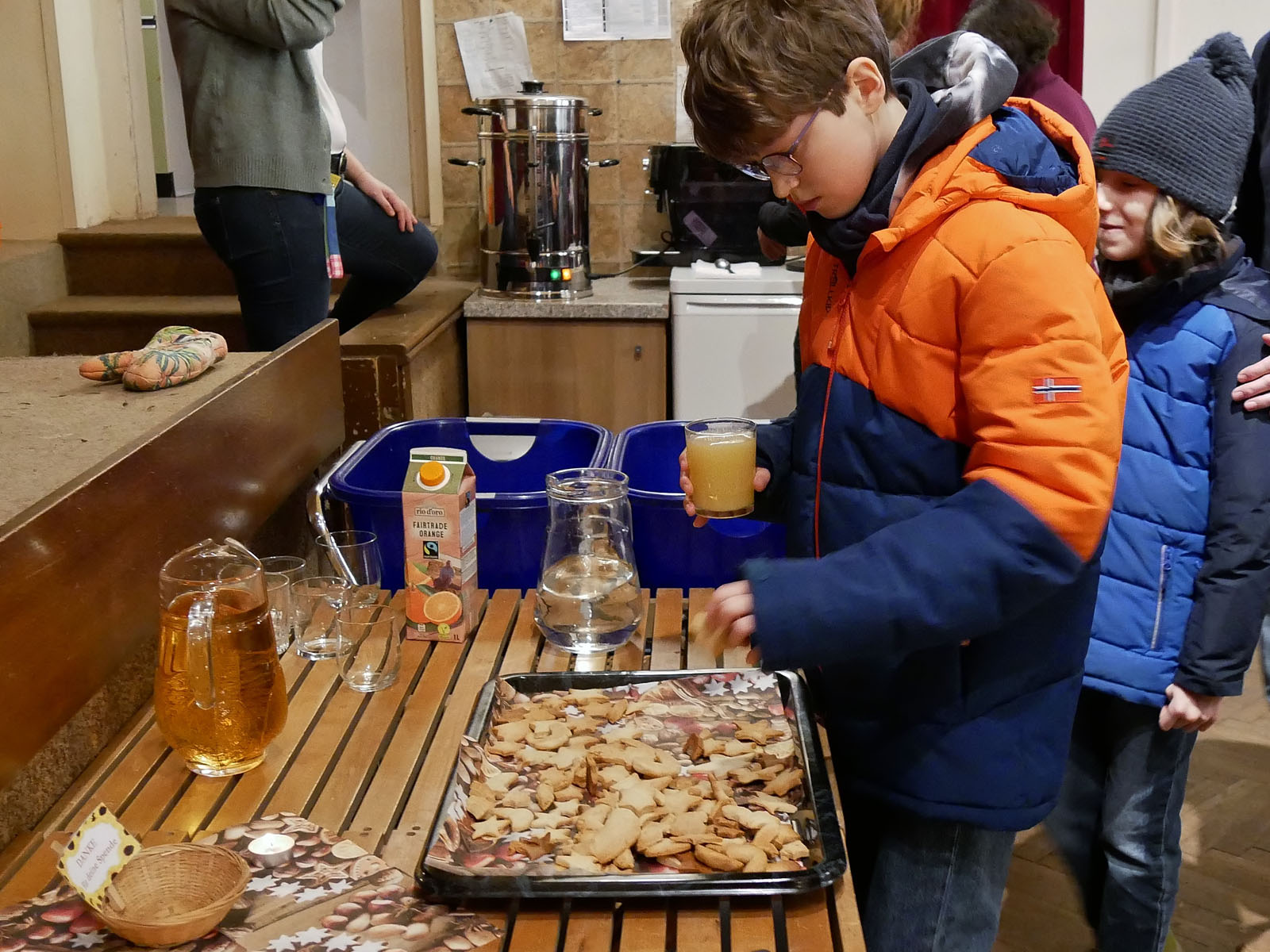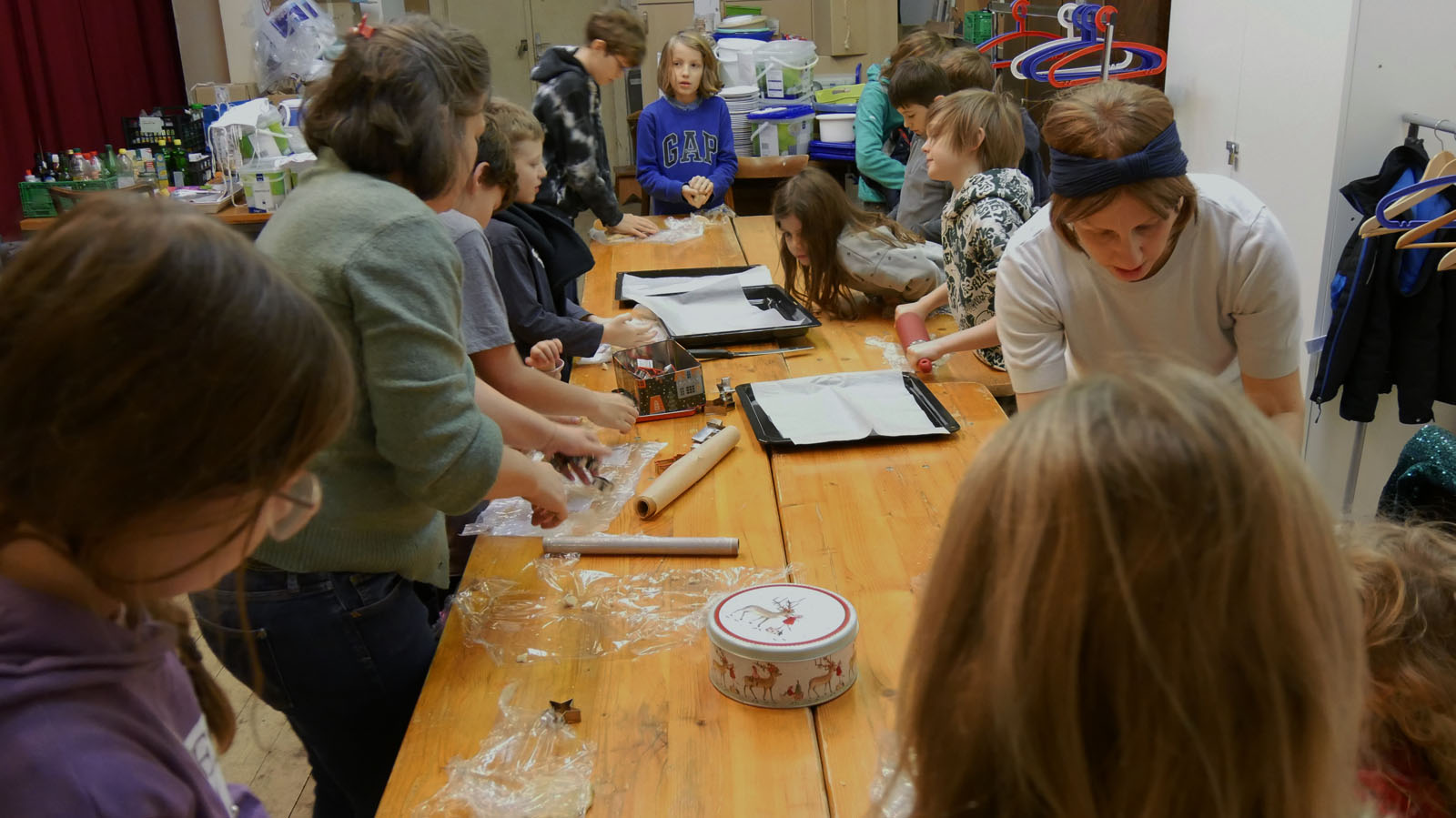 Am vierten Adventsonntag gehen die Kinder auf die Pfarrsaal Bühne, wo sie von einem fertigem Keksteig Kekse mit Sternformen ausstechen und im Herd backen. Die frisch gebackenen Sternkekse sind beim anschließenden Pfarrkaffee zum Essen bereit.