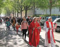 Zu den beiden Messen am Ostersonntag kamen ca. 200 Gläubige. Die Auferstehungsfeier um 5:00 ist wohl die wichtigste Messfeier des Kirchenjahres (mit Text zur Predigt). Danach gemeinsames Osterfrühstück im Pfarrsaal. Für Spät-Aufsteher fand um 9:30 ein Hochamt mit dem Kirchenchor statt.